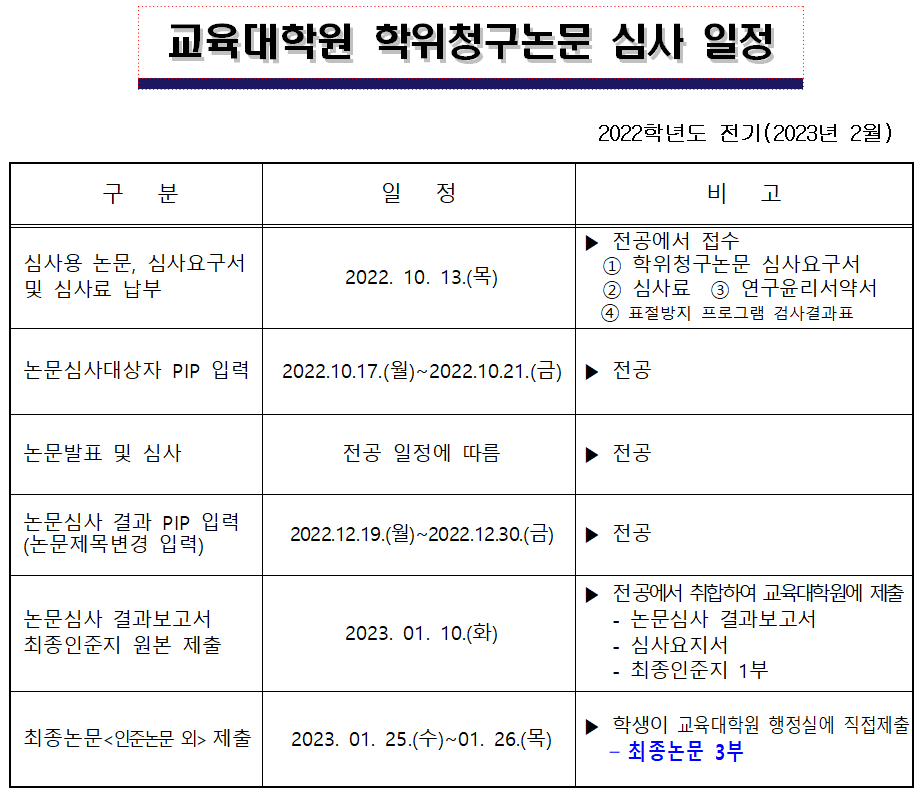 2022학년도 전기 교육대학원 학위청구논문 심사계획 알림