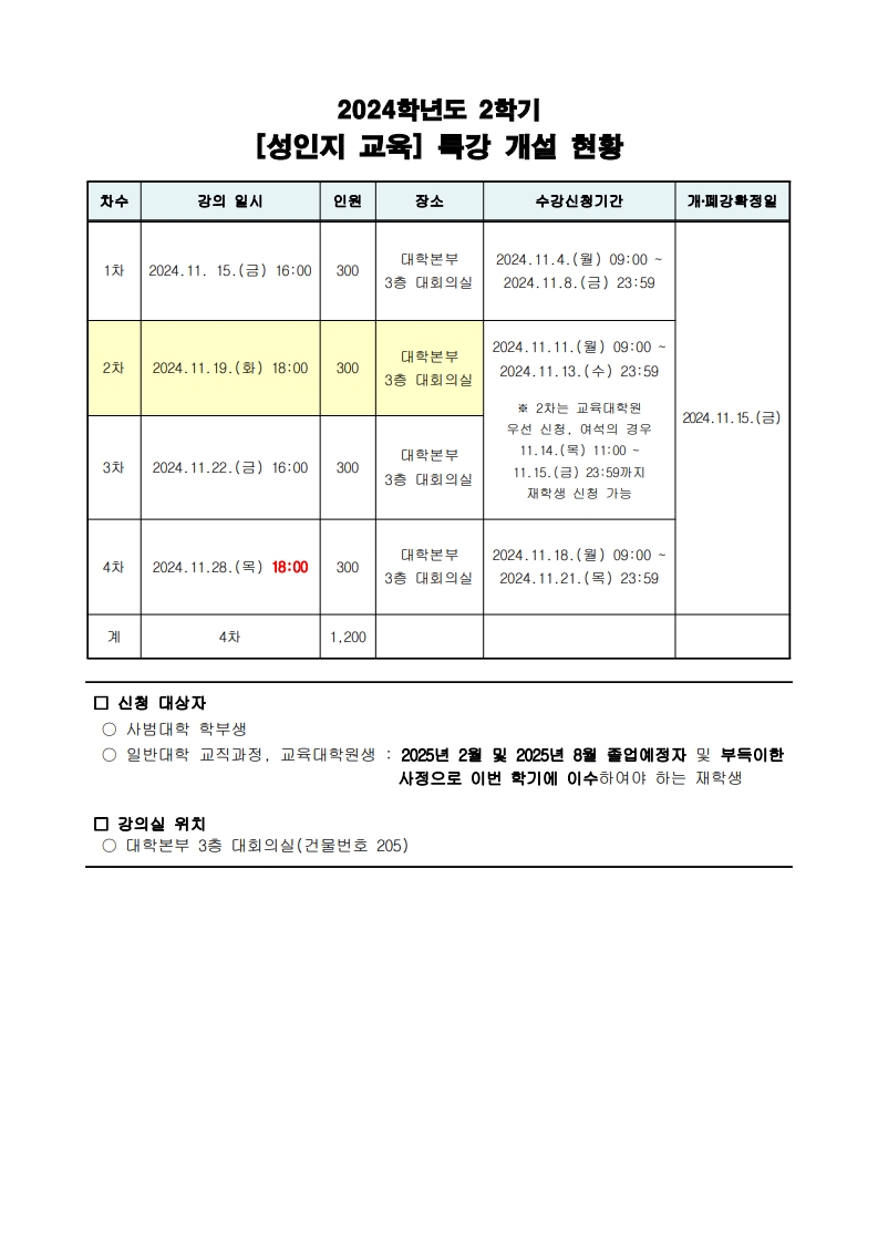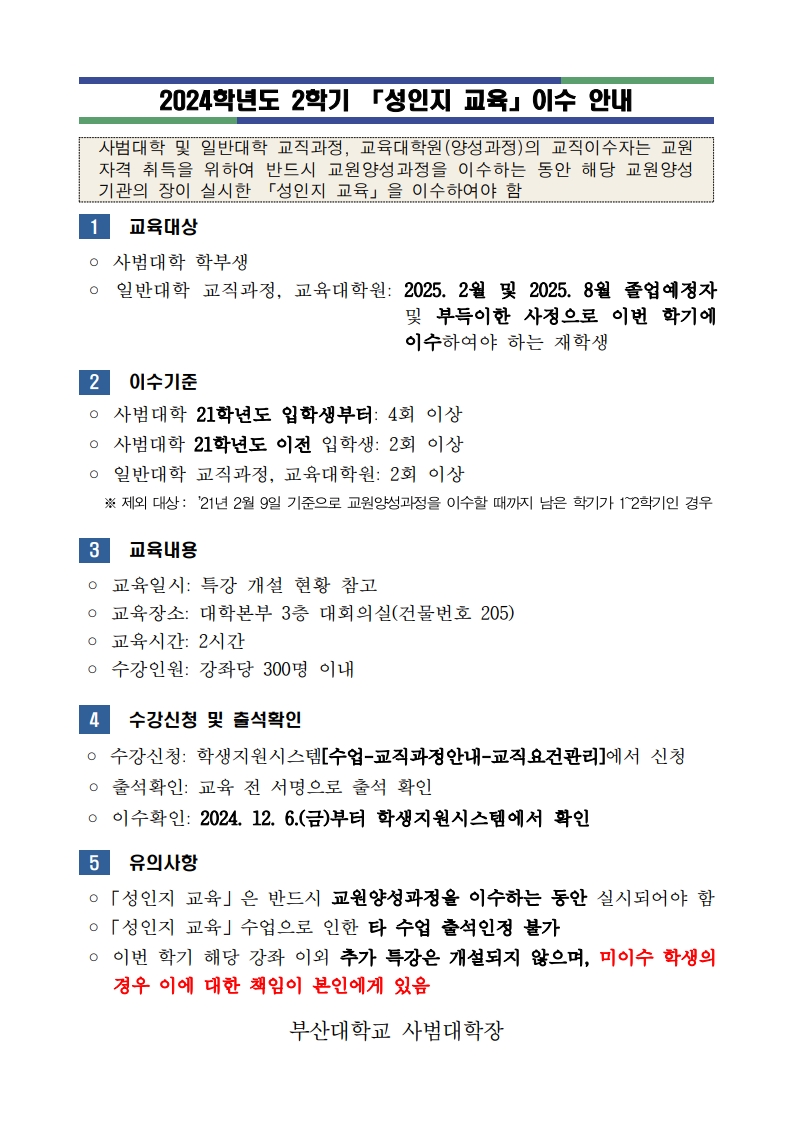 2024학년도 2학기 「성인지 교육」 시행 알림